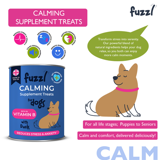 Fuzzl Calming Supplement Treats - Reduce Stress, Fear, Barking - Jumbo 180g