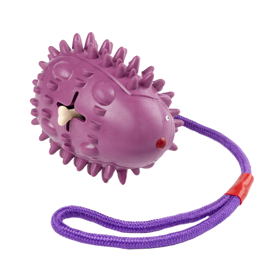 Fuzzl Eco Rubber Chuck & Treat Hedgehog Purple Dog Toy