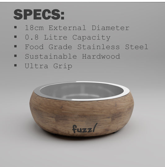Fuzzl Titan Mango Wood & Stainless Steel Bowl 18cm Dog Bowl – Pet