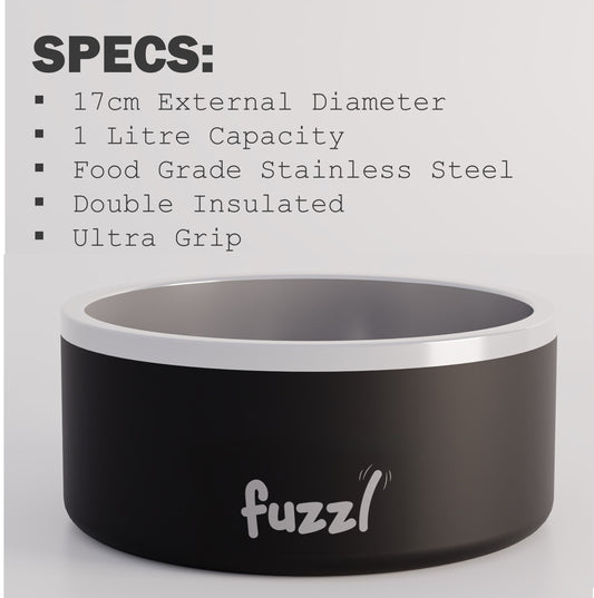 Fuzzl Titan Thermal Bowl 17cm - Matt Black Insultated Thermal Dog