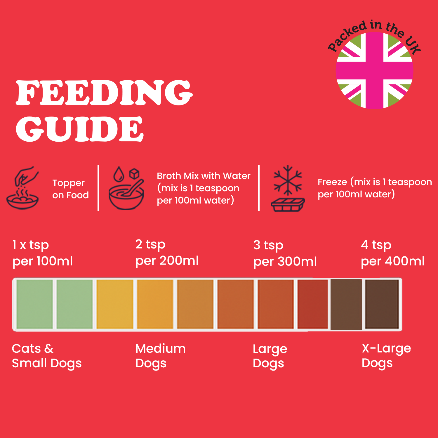 More than just a topper — this broth works as a full-body wellness booster. It helps soothe digestion, enhance nutrient absorption, and promote a radiant coat and hydrated skin, keeping your dog feeling and looking their best.