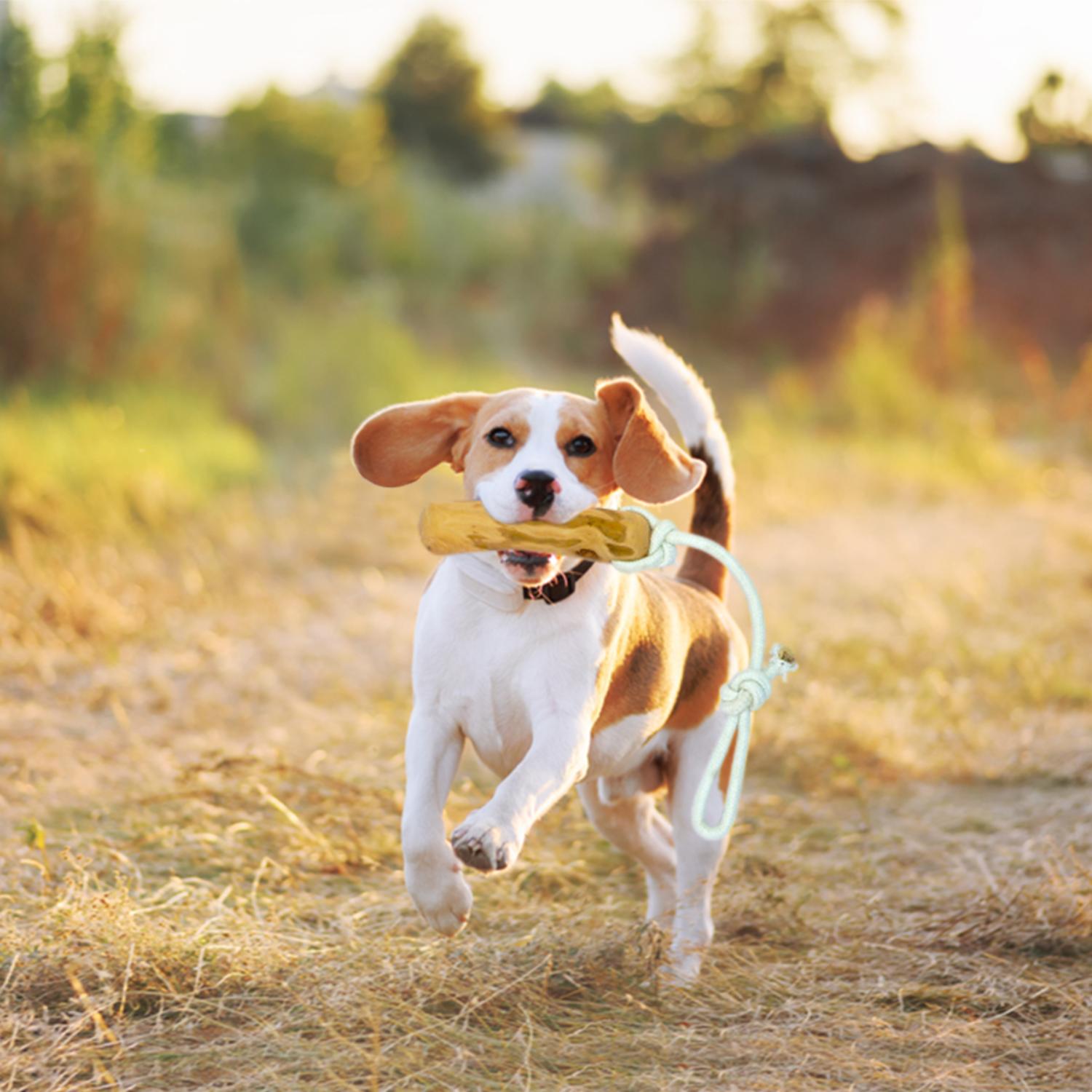 Combining smooth natural wood with a durable rope handle, this toy provides multi-sensory stimulation — perfect for dogs that love to chew, tug, and fetch. The textures keep your pup engaged and entertained for hours.